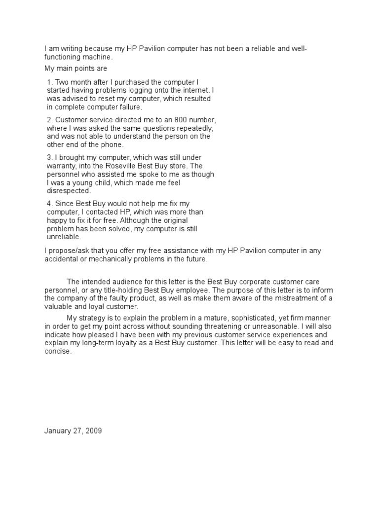 Complaint Letter | Best Buy | Business