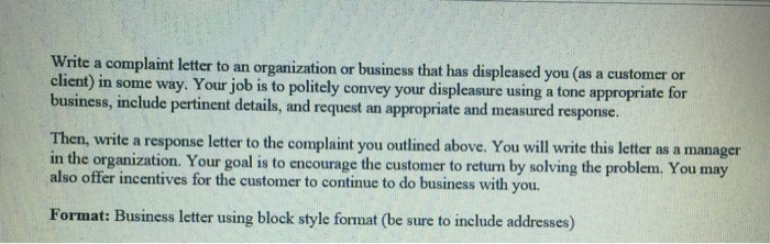 Solved: Write A Complaint Letter To An Organization Or Bus ...