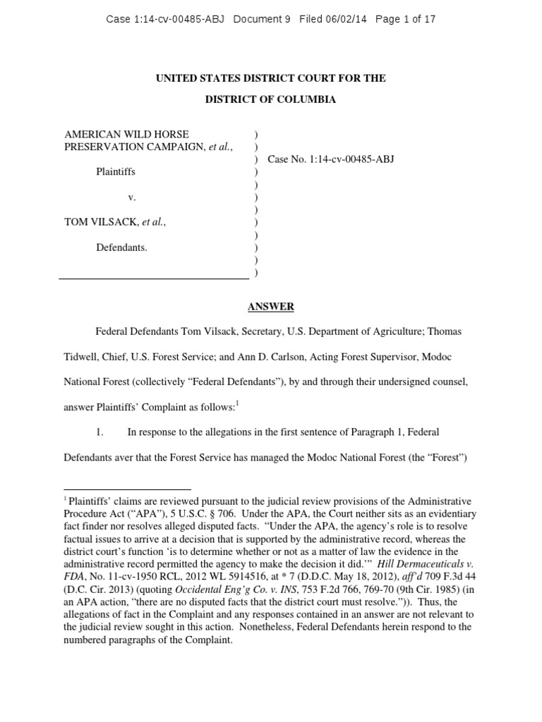 USDC 2014-06-02 Dkt 9 Vilsack Answer 4827-1010-0763 1 ...
