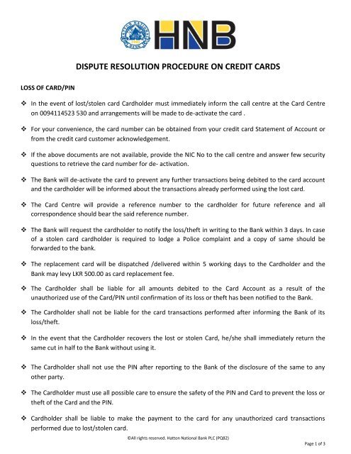 Dispute Resolution Procedure - Hatton National Bank