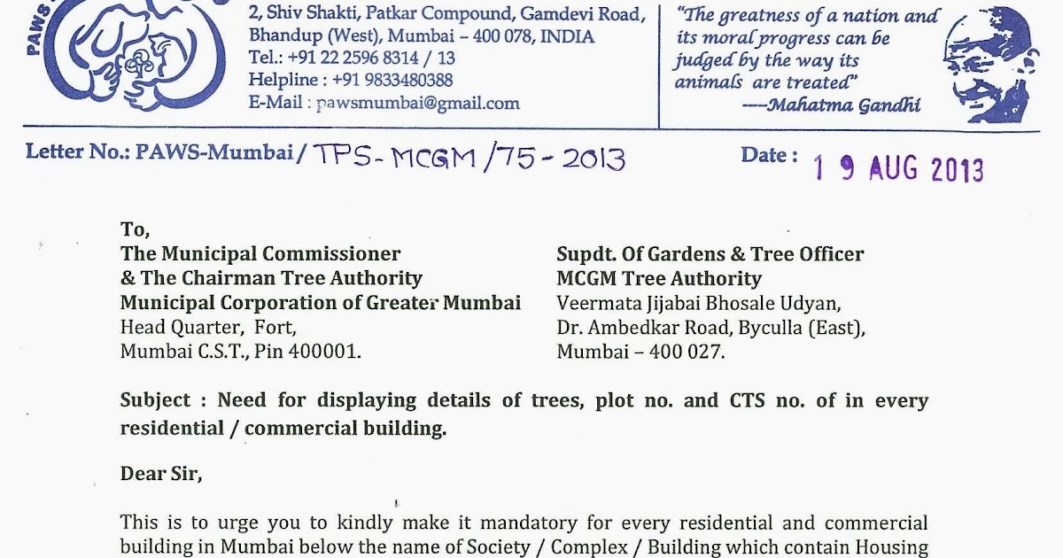 Here is a letter format available to help you write a good letter and submit to the municipal commissioner.