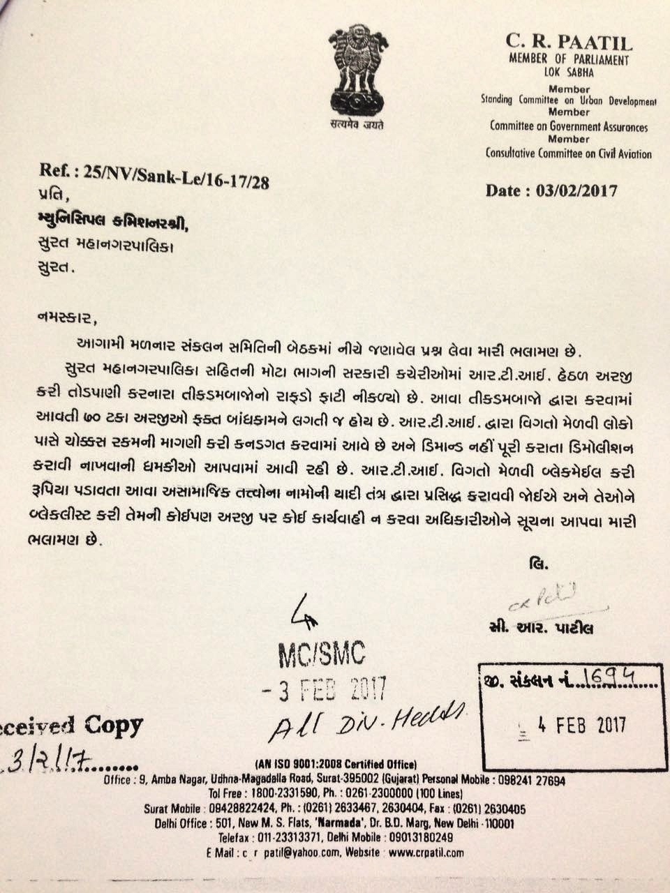 Gujarat MP asks Surat Municipal Corporation to ignore RTI ...