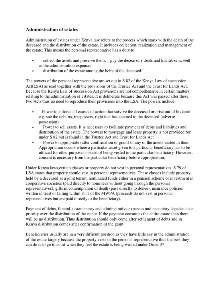 Administration of Estates | Trust Law | Trustee