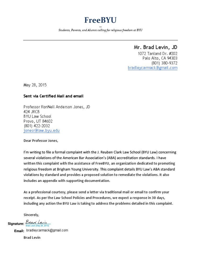 BYU Law Complaint (inc. cover letter) | The Church Of ...
