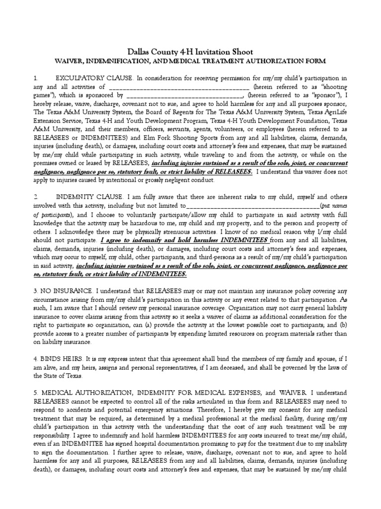 Wavier for Shooting Sports | Indemnity | Liability Insurance
